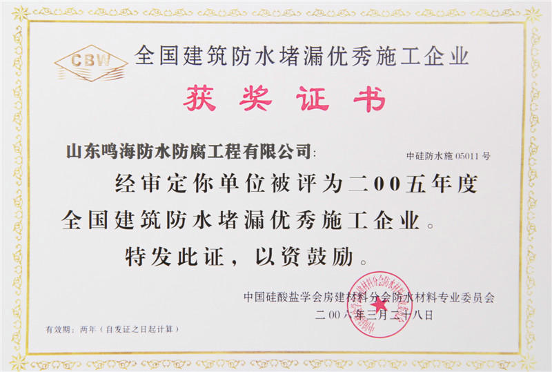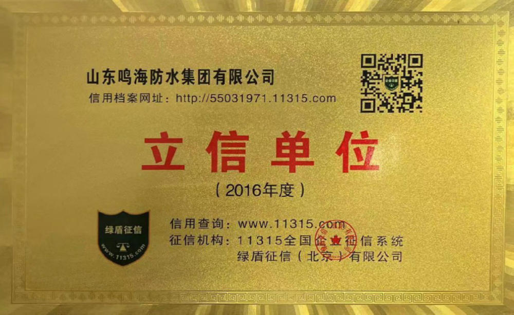 山東鳴海防水集團有限公司是科工貿(mào)為一體的綜合性企業(yè),成立于一九九八年,下設三個子公司、一個分公司、五個辦事處,分別為山東宇鳴防水保溫有限公司、威海市鳴海防水材料有限公司、威海宇鳴新型材料有限公司,宇鳴科技有限公司是中國建筑協(xié)會理事單位,連年評為企業(yè)誠信單位。在全國成立了多個辦事機構,分別為新疆、銀川、蘭州、青海、青島、大連、濰坊、北京等多個城市。